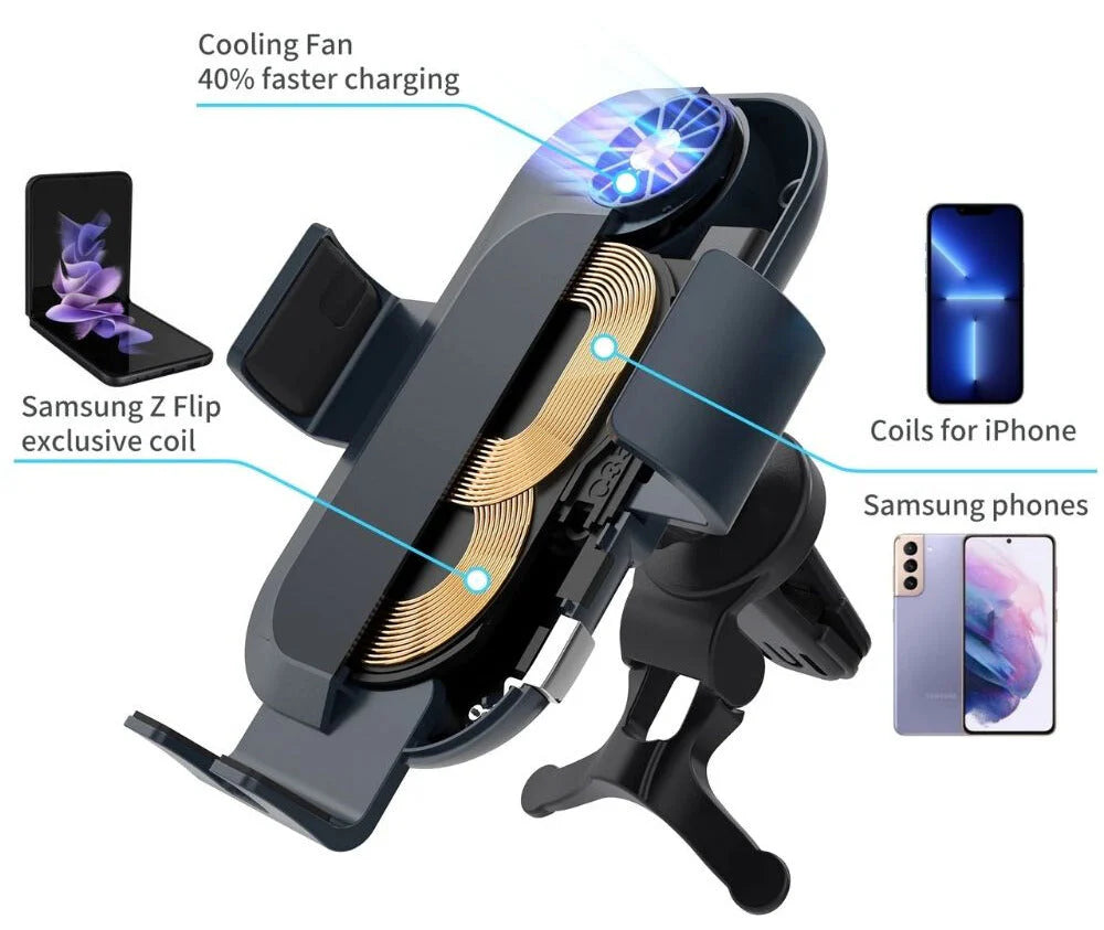 Enjoy efficient 15W fast charging on the road with the dual-coil system—engineered for the unique folding design of your Z Flip. Charge vertically or horizontally without interrupting navigation or calls.