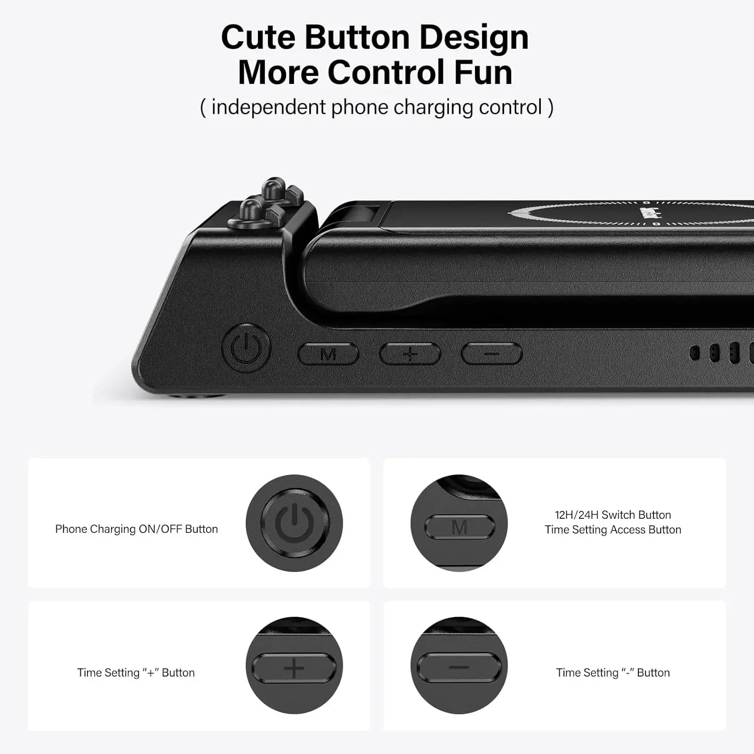 Perfect for travel or your nightstand. The foldable magnetic stand adjusts to multiple angles for easy viewing while charging.