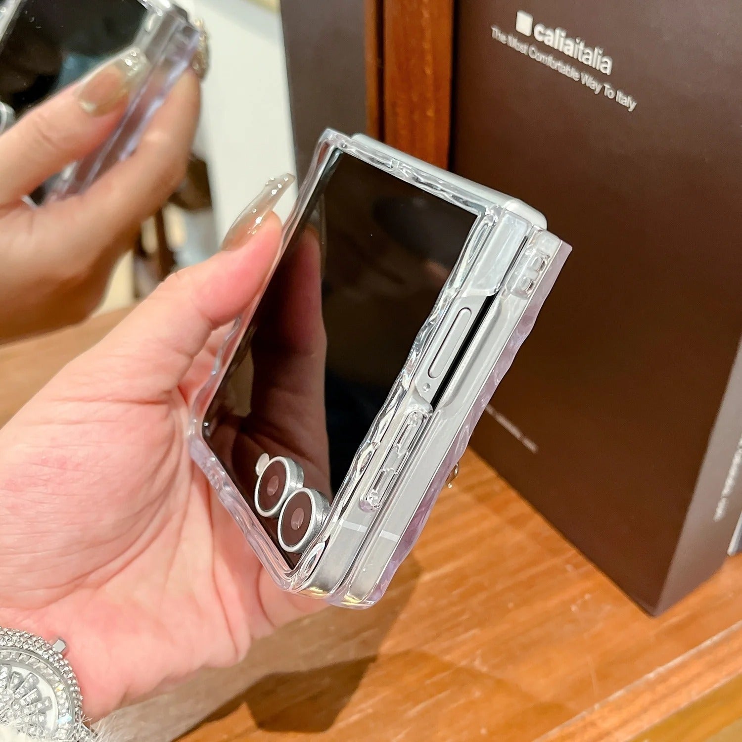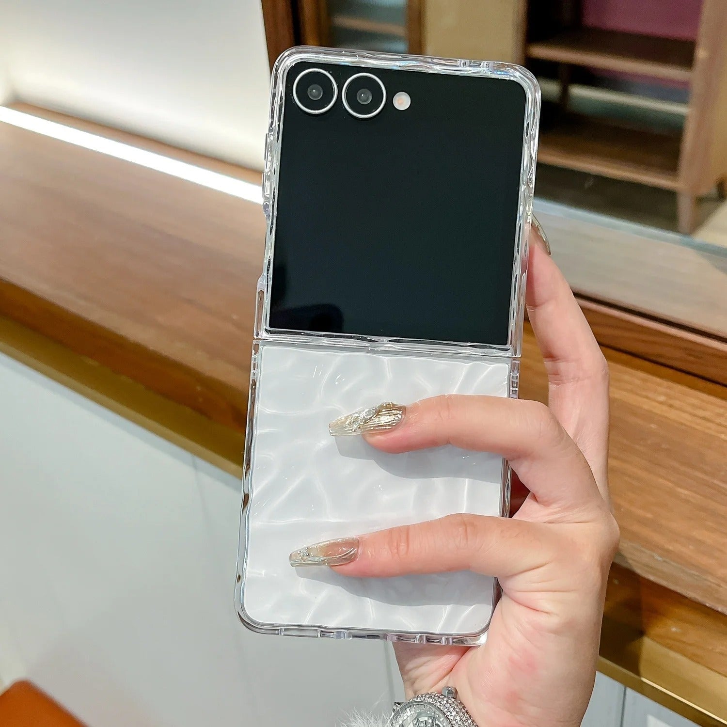 Bring elegance and texture to your Z Flip with the CrystalWave Edition – a stunning transparent case featuring a unique 3D water ripple design. This case perfectly balances modern minimalism with premium protection for your foldable phone.